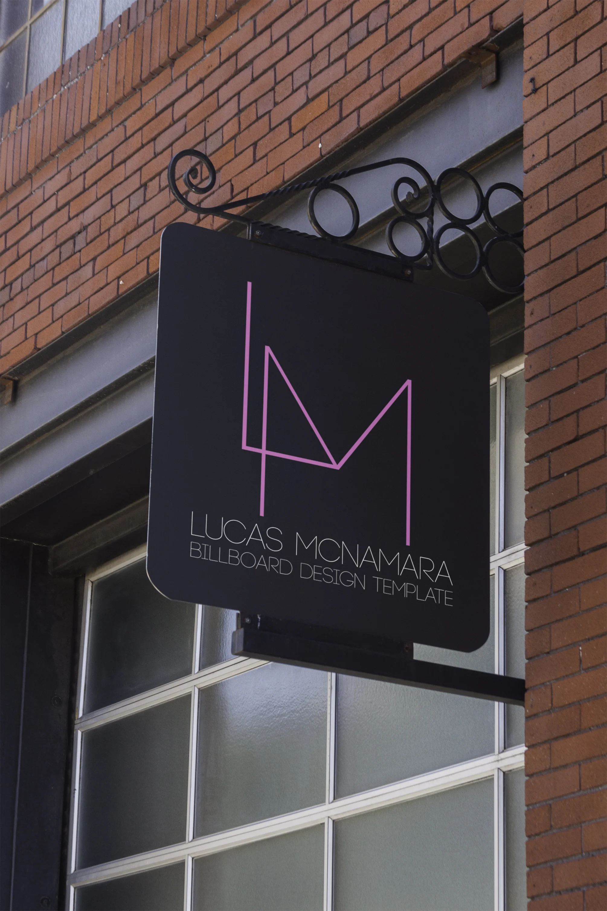 Original 2010x3016 px PSD mock-up of a hanging wall sign you can use to showcase your logo for your business. For the ideal presentation, just place your text in the smart layer and adjust the soft light layer.
